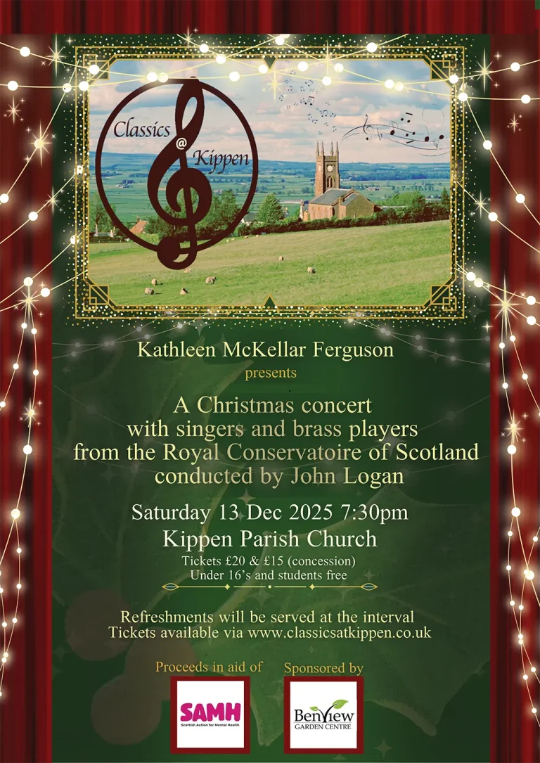 This concert will be in aid of Scotland’s national mental health charity SAMH (Scottish Action for Mental Health). We are very grateful to Benview Garden Centre which will sponsor this event.
